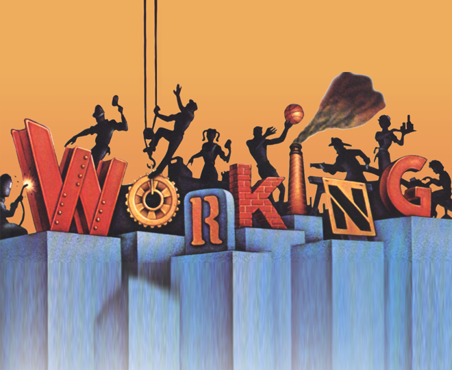 This musical comedy follows 26 everyday-American workers. The audience meets and hears stories from workers of all walks of life - sharing their hopes, dreams, joys & challenges over a single workday. This musical showcases the routines of the often overlooked, everyday worker. Some of the characters (portrayed by 6 versatile actors) include the school teacher, the parking lot attendant, the waitress, the mill worker, the mason, the trucker, the fireman - and even the prostitute.